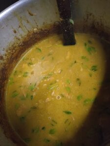 ホールスパイスを多めに使い、ナッツやポピーシード、青唐辛子、ココナツなどをピューレにし、ココナツミルクで煮込んであります。挽いたコリアンダーと少量のガラムマサラ、多めの粗挽き黒胡椒で味を引き締めてあります。濃厚ジワジワ系。420円