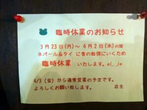 さてさて、まずはお知らせ!3/23(月)~4/2(木)まではお休み、ご注意!